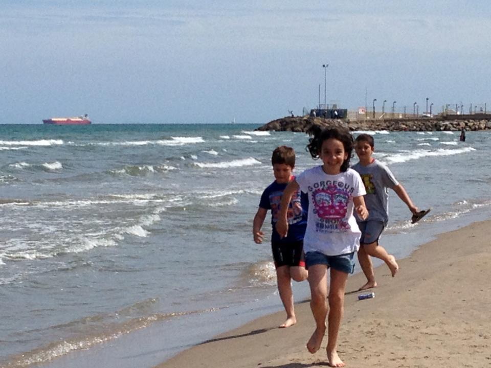 Llegamos el Viernes temprano, y lo que mas urgía era ir a ver el mar, fue para mi emocionante verles correr hacia la orilla súper contentos, parece que no hubieran pisado la playa en su vida.
