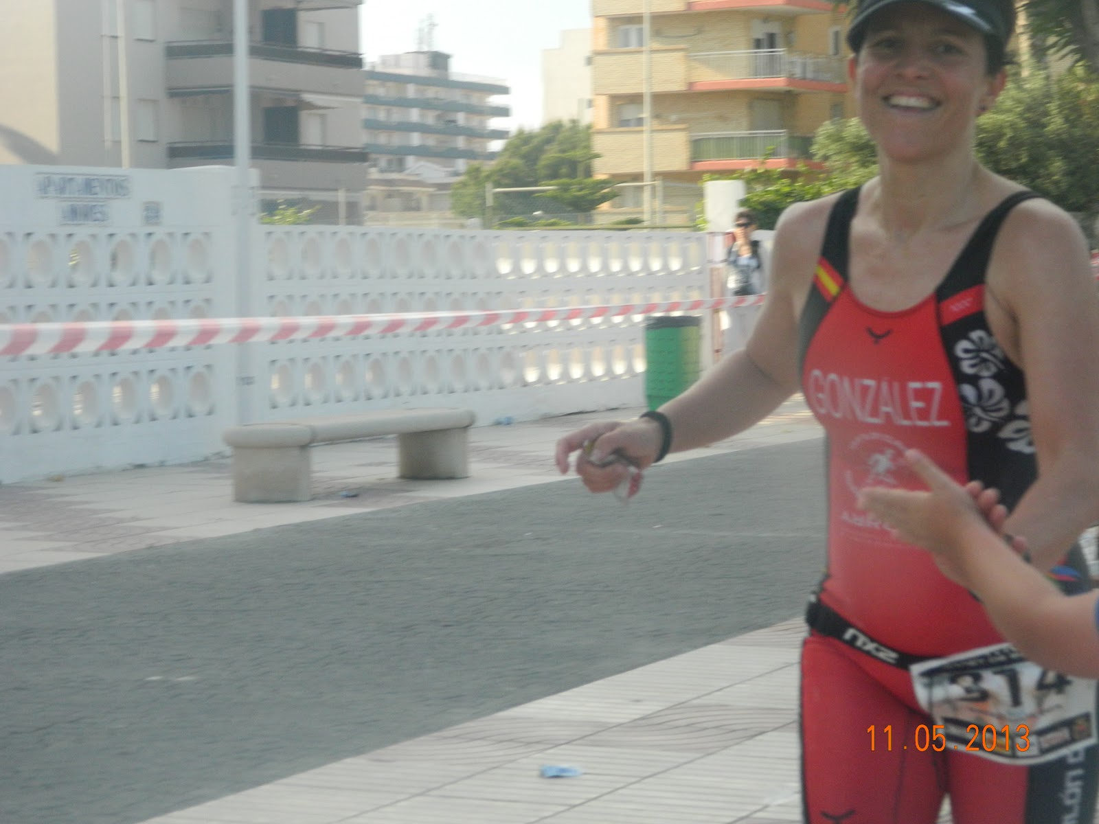 También me encuentro a Cotu y Bego, que grandes, que emocionante veros ahí vuestro apoyo es bestial, Cotu me pregunta que tal voy y le digo muy bien, genial. Llega la tercera vuelta y las piernas ya se quejan me duelen los cuadriles, me encuentro sola y en muchos tramos de carrera y los ánimos decaen un poco, aun así sigo haciendo todo lo posible por no bajar mucho el ritmo, y hay en tramos en los que consigo venirme arriba, he comido y bebido en todos los avituallamientos esta saliendo todo sobre ruedas, ademas planeo en los últimos cuatrocientos metros del paseo subir el ritmo y lo consigo, llego a meta y allí están los niños entramos juntos rapidísimo.. hasta he podido espiritar.. SUPER CONTENTA.. un tiempazo, para mi debut, 05:30:41 seg, llego a meta en quinta posición, y gano en Veteranas 1.